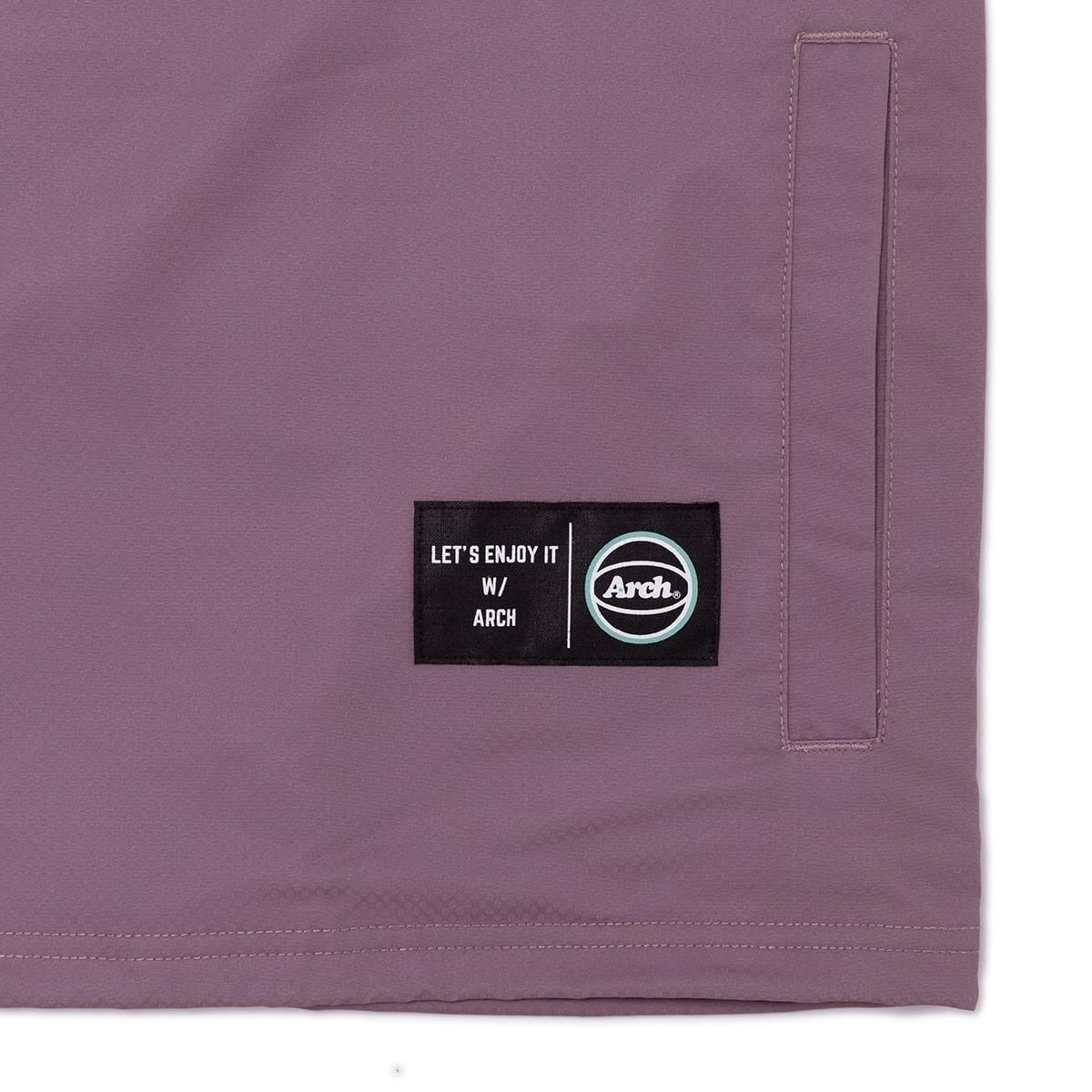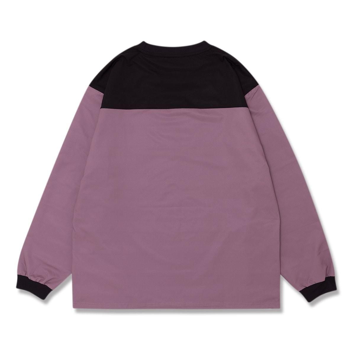 ・カラー:モーブ ・素材: ポリエステル100% カレッジ調のロゴをフロントにビッグサイズでプリントしたウインドクルーネックシャツ。 ・着心地のよいハニカムメッシュのポリエステル素材を採用。 ・着脱が簡単で、ズボッとカブれるゆったりめのシルエット。 ・サイドポケット付きで、デイリーユースのアウターとしても活躍。 ・裾はドローコード付で、保温調整と好みのシルエットへの調節が可能。 バリエーションは、ブラック、ネイビー、モーブの3色を用意。 モデル:身長188cm 着用サイズ:トップスXXL、ボトムスXL